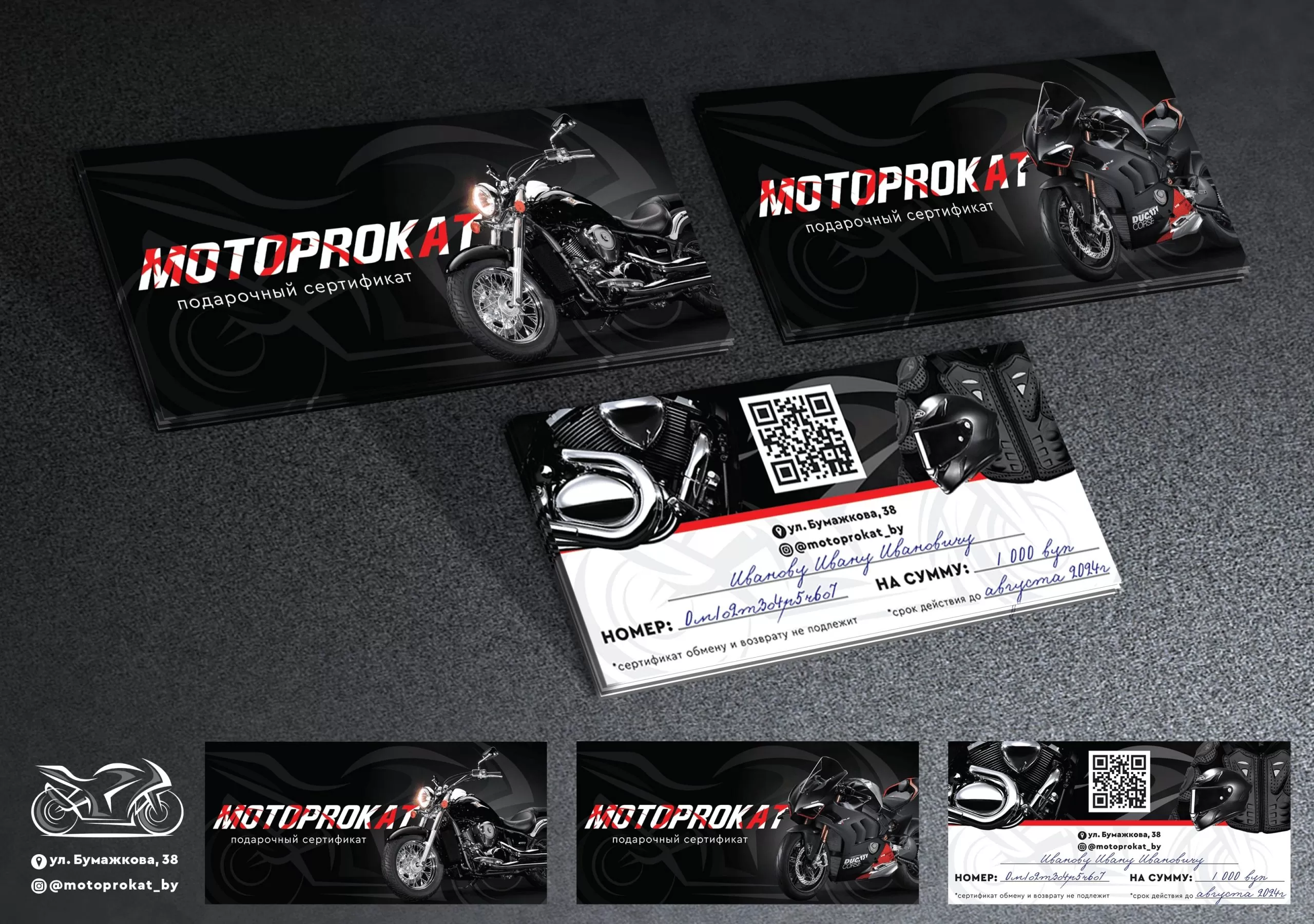 Сертификат можно приобрести на любую сумму от 100 BYN. Сертификат может быть использован для любого мотоцикла, позволяя выбрать то, что действительно понравится!